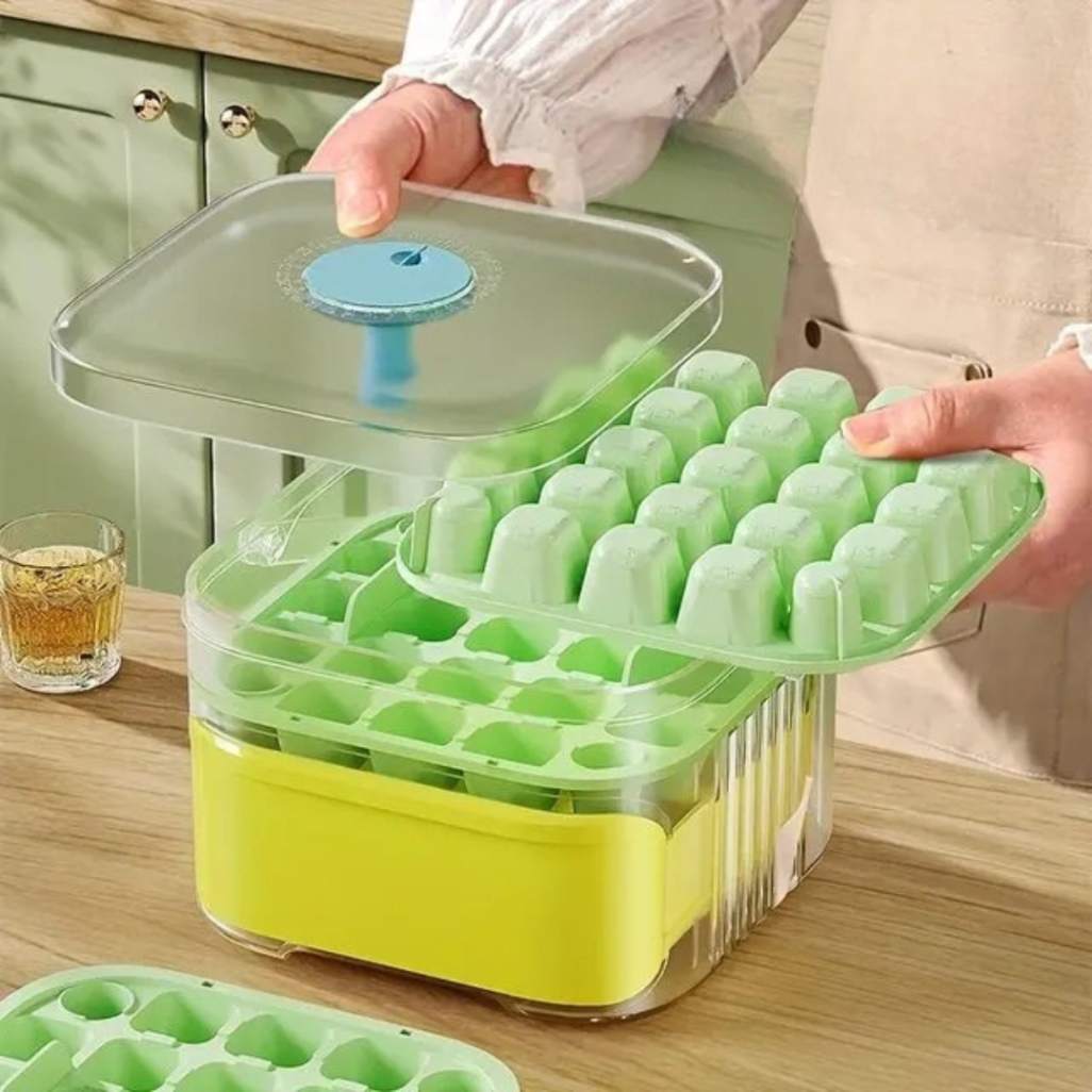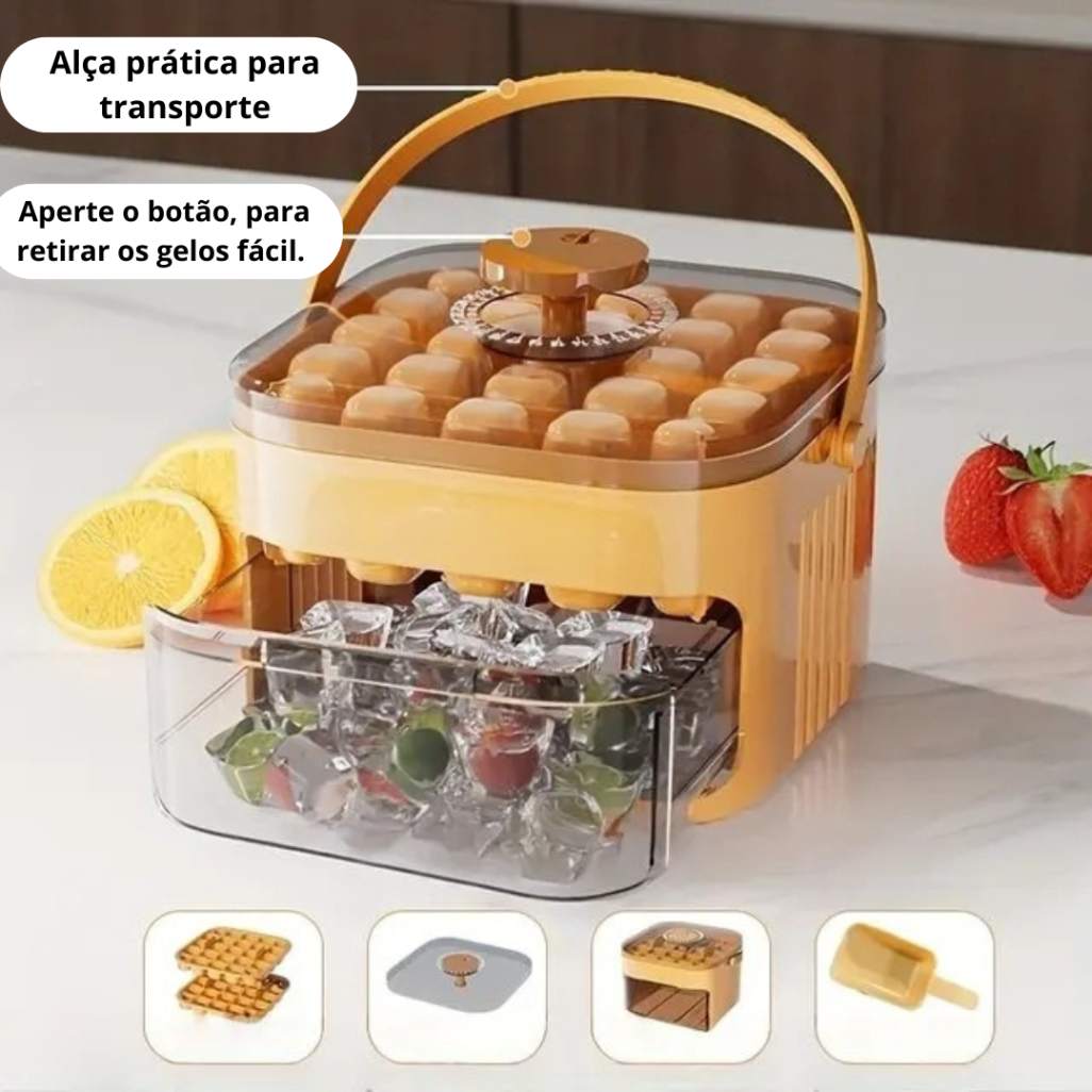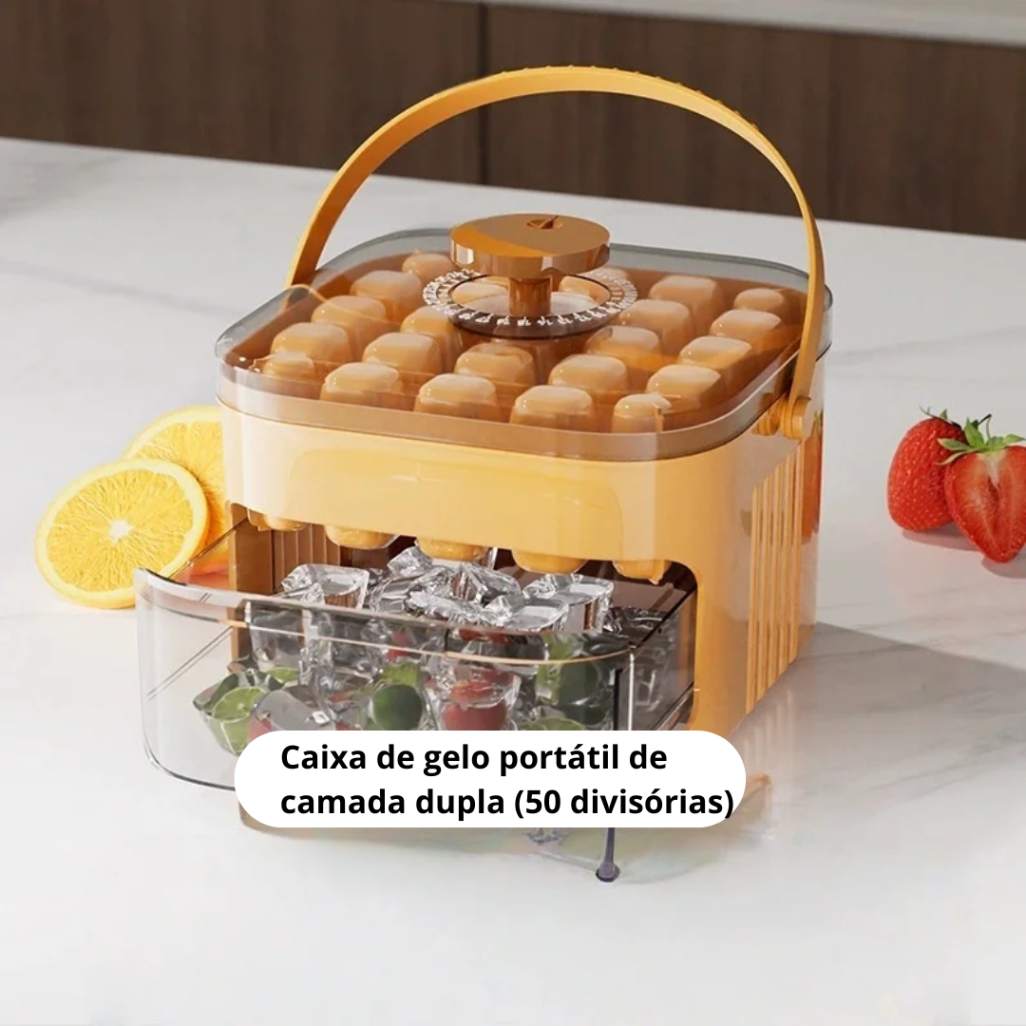 Design inovador: Camada dupla, tampa protetora e compartimento inteligente. Nada de gelo grudado ou difícil de desenformar!